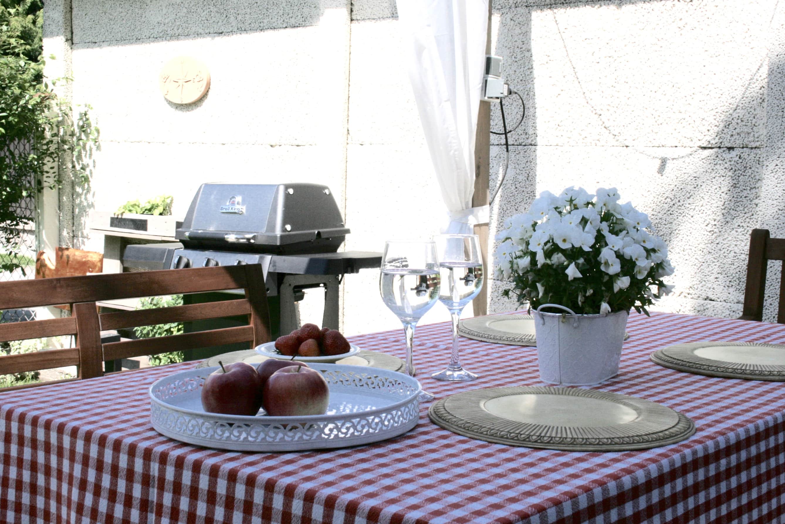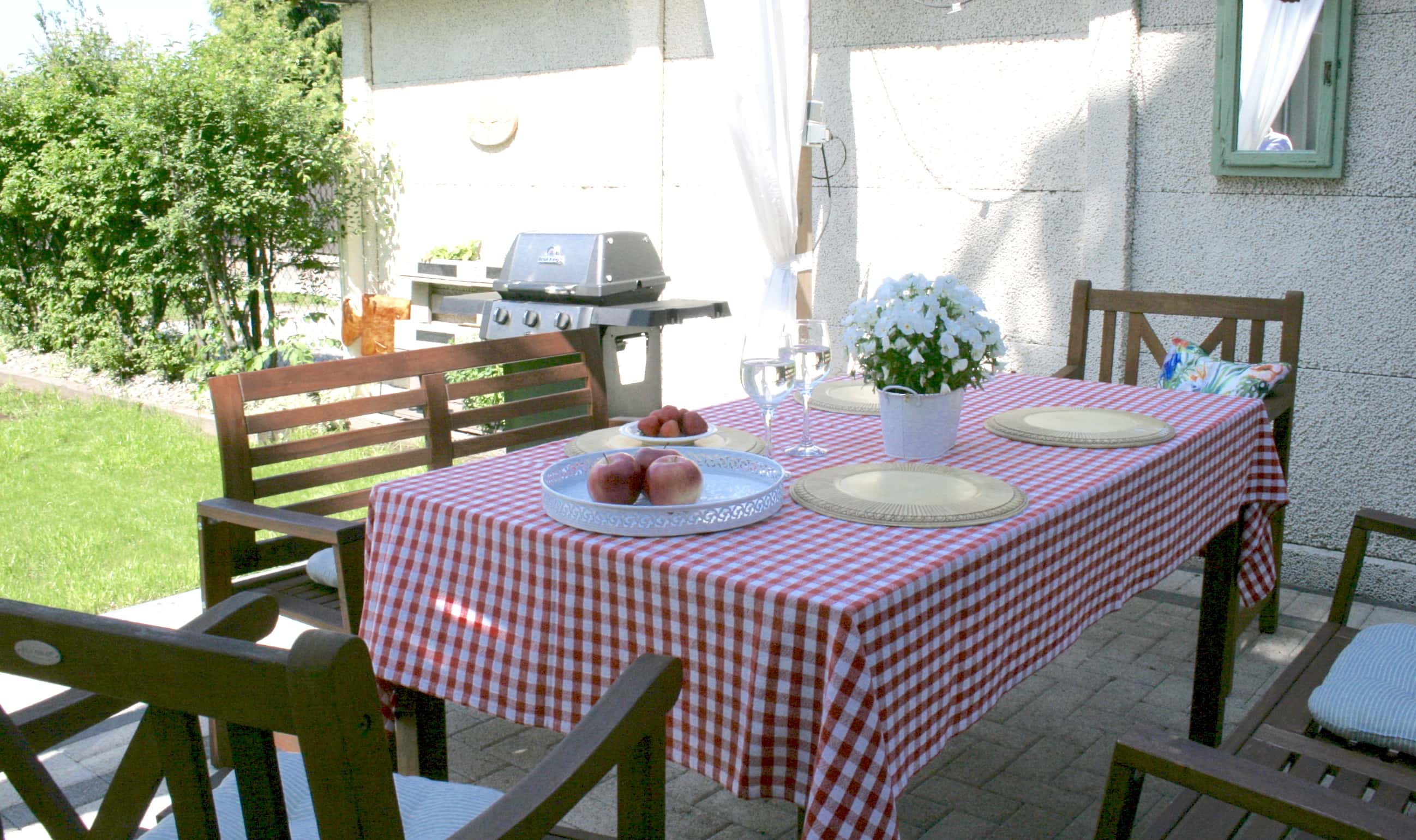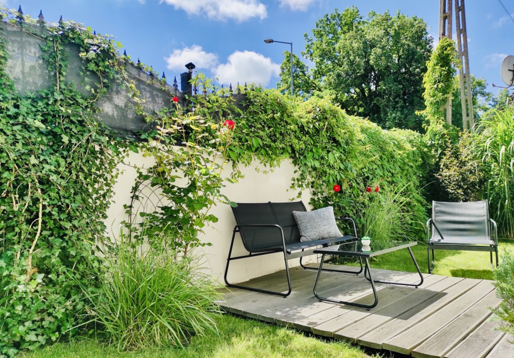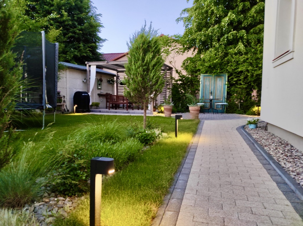 Na zewnątrz zadbaliśmy o oryginalnie zaprojektowany ogród z miejscami do grillowania i relaksu.